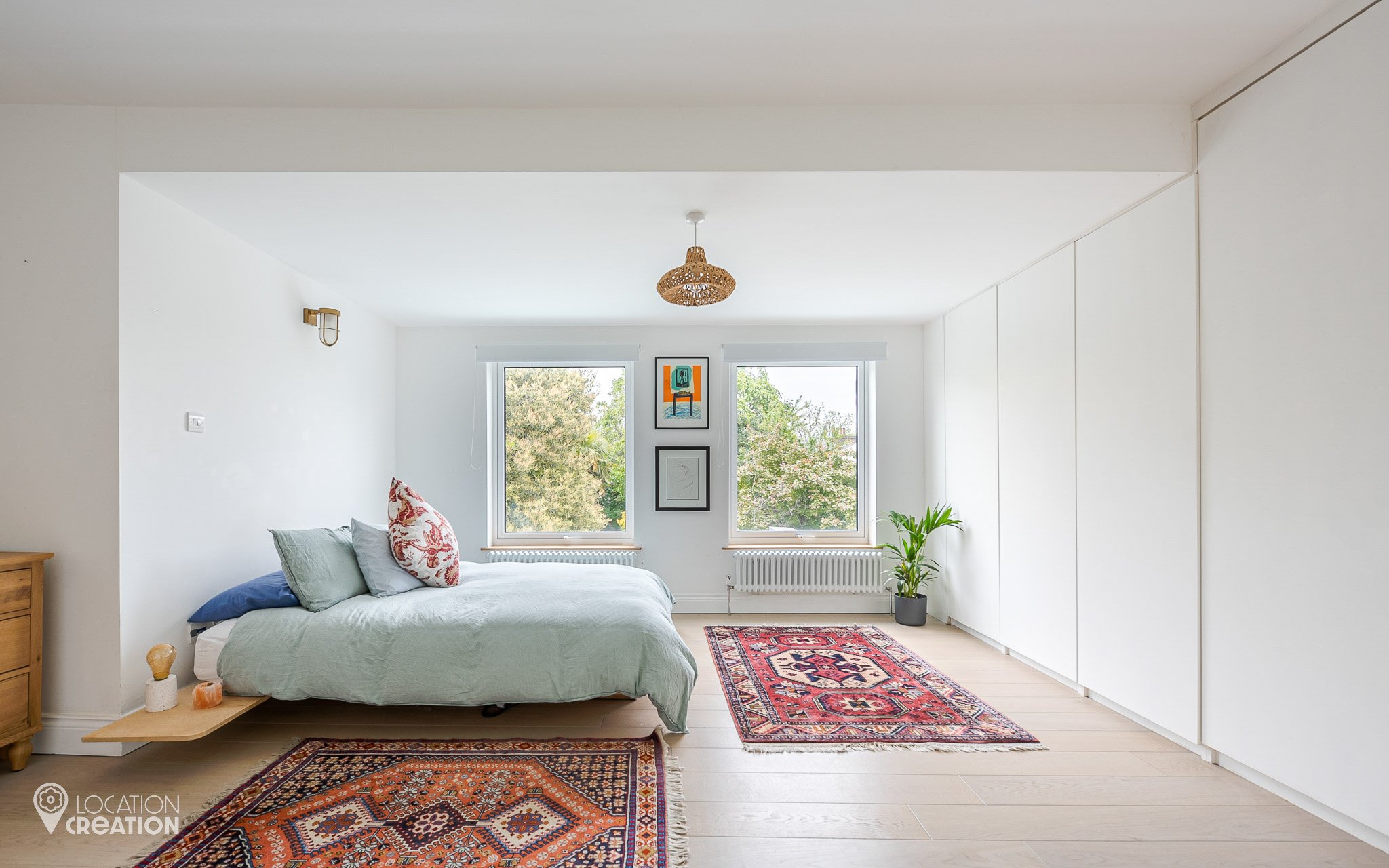 Burcote House is an Edwardian home in Earlsfield, London. It is popular for its massive kitchen/dining/living space. The living room is warm and inviting, easily setting the tone for your episode. With glass sliding doors, a skylight and two large sofas that can be moved as required, it is a flexible space that is great for production and accessible for your entire crew (wheelchair friendly).